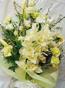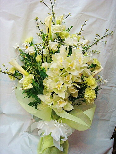 【お供え 花】【お供え 花束】【法事 お供え】【供花 一周忌】【お悔やみ 花】「季節の枝ものと洋蘭のお供え花束2Lサイズ」(白・淡い色)7000円(税込) 【送料無料】葬儀 葬式 花 仏事 命日 枕花 墓参り ペット お悔やみ