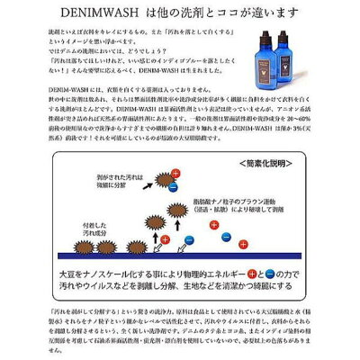 <デニムに適している理由> ※デニムが醸し出すタテ糸とヨコ糸、またインディゴ染料の相互関係を考慮して石油系界面活性剤・蛍光剤・漂白剤を使用していないので、必要以上の色落ちがありません。